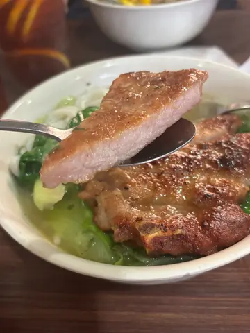 放假瞓醒覺,專登走咗去元朗食心心念念嘅豬扒飯。一嚟到餐廳,已經聞到陣陣香氣,令人食指大動。豬扒煎得金黃香脆,外皮微微焦香,咬落去卻出奇地腍滑,肉汁豐富,完全唔會乾柴。最正係佢哋嘅半熟荷包蛋,蛋黃流心,撈埋飯一齊食,簡直係絕配!再加埋佢哋特製嘅豉油,味道濃郁得嚟唔會太鹹,將成碟飯嘅味道提升到另一個層次。整體嚟講,呢碟豬扒飯真係冇得輸,豬扒嘅火候掌握得恰到好處,荷包蛋同豉油嘅搭配更加係畫龍點睛。雖然價錢唔算平,但絕對物有所值。如果你係豬扒飯嘅粉絲,呢間絕對值得一試!