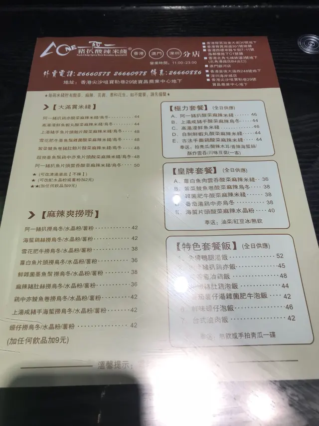 阿一豬扒酸辣米綫 (尖沙咀) 網址: https://s.openrice.com/QrbS0n50800 地址: 香港尖沙咀寶勒巷29號地下 電話: +852 26660878