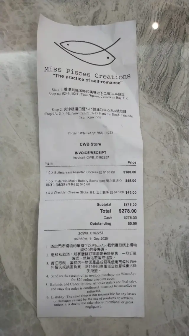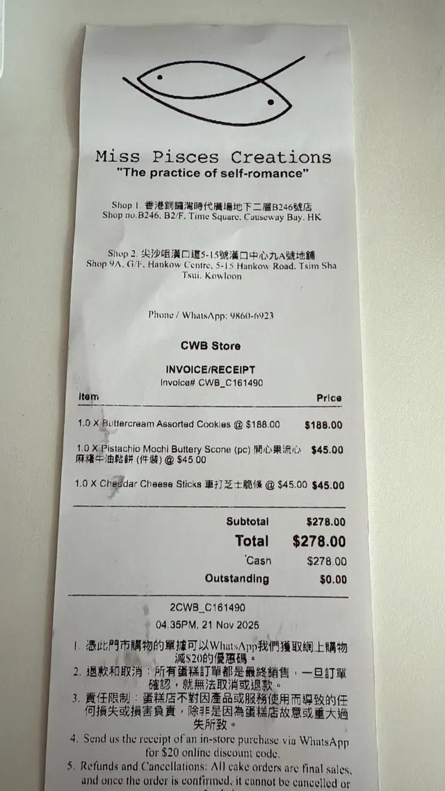 雙魚小姐 (銅鑼灣) 網址: https://s.openrice.com/QrbS0gpmF00 地址: 香港銅鑼灣勿地臣街1號時代廣場B2樓B246號舖