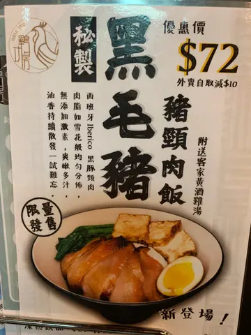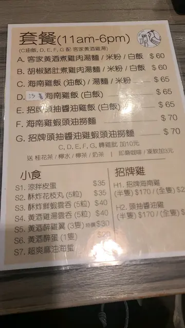 早上office 冷到飛起,路面成30度,但手腳總是冰冷,咁啱附近有黃酒雞,真係諗都冇諗就衝入去試。成個餐牌都係雞,不過你入到舖頭都會俾藥材味所吸引,所以是日Lunch 就order 黃酒雞。而我d 同事好像為我既食評著想,一人order 一款雞。醬油雞- 顏色就好充足,不過醬油就未入到雞肉內。客家黃酒雞 味就不太濃,但有傳統既濃邊蛋,除此仲有好多配菜。午餐來說很飽肚的,不過以$60 的價錢,真的抵到爛。不過,午餐來也來也匆匆去也匆匆,老闆親切的招待,其實都在食物以外,另一個吸引人光顧的地方。…查看更多