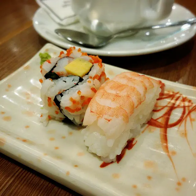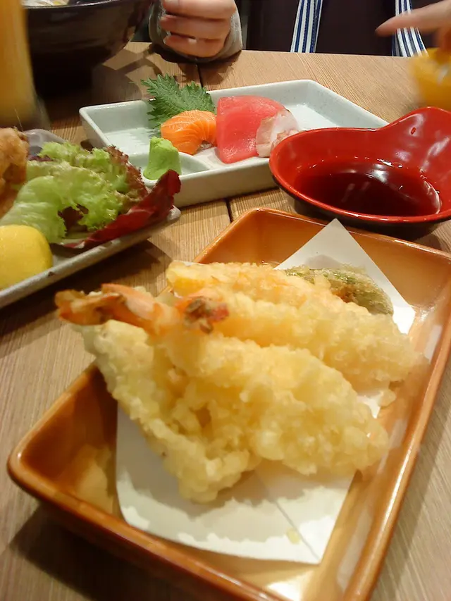 尋日(26-10-2013 Sat)等男友放工後睇戲,o岩o岩可以食完飯至睇,我o地先搵o野食,男友冇idea,而我又有少少唔舒服,就建議o黎我記得食過一次,唔係咁好食o既呢間食拉麵.(o個個食評: http://www.openrice.com/restaurant/commentdetail.htm?commentid=1959926&tc=sr2rvw&con=rvw)我o地o黎到都唔係好多人,坐低後,男友要$62.00o既叉燒沾麵伴熱沾醬,飲凍檸茶,我要$70.00o既天婦羅烏冬,飲凍檸水,加個$58.00o既煙三文魚忌廉芝士卷.好快,兩杯o野飲到o黎,糖水要自己加o既,呢個正常冇問題.然後男友o既叉燒沾麵伴熱沾醬到o黎,原來連熟蝦壽司同卷物各一,拉麵原來唔係凍係熱o既,就咁食唔蘸醬汁係冇味,而佢o既醬汁夠杰身,味道亦濃,叉燒係瘦叉燒,口感比較硬.然後煙三文魚忌廉芝士卷到o黎,共有6件,其實呢個都唔使要wasabi,一啖食落去,用飯同蛋中和煙三文魚同芝士o既鹹,味道o岩o岩好,都算唔錯o既.而我o既天婦羅烏冬都到o黎,同樣都有熟蝦壽司同卷物各一,烏冬湯係簡單o既醬油,味道冇咁濃,天婦羅有兩件海老,南瓜,蕃薯,茄子同……荷蘭豆,真係估唔到會用荷蘭豆.南瓜同蕃薯唔係好夠甜,海老同,茄子正常,至於荷蘭豆,正常荷蘭豆味道囉,係僅僅熟,而我覺得用佢o黎整天婦羅係唔夾.最後食熟蝦壽司同卷物,呢兩個同樣係正常冇問題.今次服務OK冇乜問題,食完時間o岩o岩好.查看更多