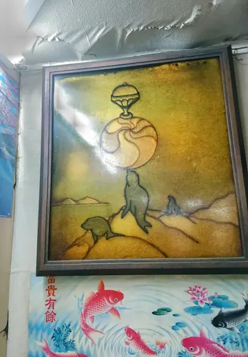 不過這一切舊裝修舊紙畫早有不少電影人睇中其價值而取景尤其這幅畫原來特別有意義 ...雪山茶餐廳有雪山畫一幅山上海獅頂著彩球亮點就在球上的一杯 "雪山雪糕" 🍧據說昔日茶餐廳的名物之一就是此雪糕 !又再間接引證往日冰室茶餐廳自家製甜品是重要一環