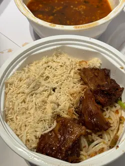 叫外賣平台外賣一個要唔辣,一個少少辣少少辣已經係最低辣嘅選擇,但都非常辣真係要慎選!!不過唔辣嗰個又真係太清建議叫清湯既人叫番d 濃味少少既餸另外配左有名物雞絲、腩肉同豬軟骨豬軟骨真係幾好食,好腍好入味,配清湯好岩,因為佢本身都有d 醬汁腩肉正常,都辣但可接受,係有啲太碎至於雞絲份量真係好多,但係好鞋唔覺得特別enjoy ...相比之下會想食返一塊塊雞肉多啲米線質地偏腍完全唔煙靭,但唔係碎不過反而係岩我口味