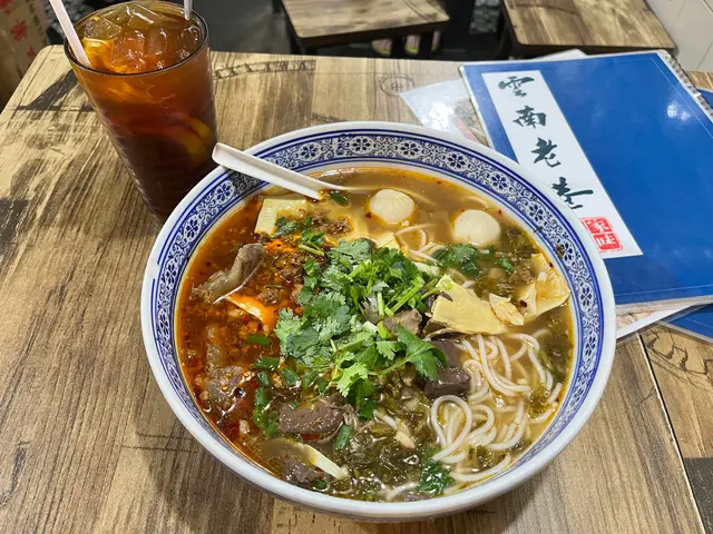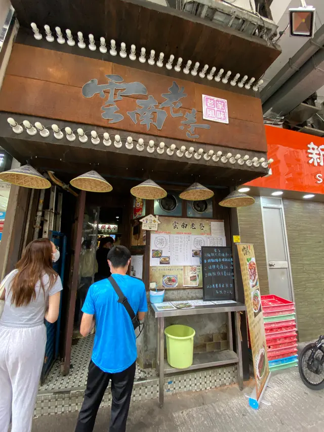 雲南老巷係典型街坊小店,之前食過幾次都覺得好食,所以今次又返嚟encore。牆身裝飾、餐牌同碗都極富仿古風味同雲南元素,幾有特色。佢係長期爆滿,店面真係好細,得十幾個位,座位之間非常迫,坐得唔太舒服,係一食完就會想走嗰種。今次叫咗走辣版酸辣湯米線,加咗竹笙、十三香雞肉同生菜。湯底一如以往有佢獨特風味,鍾意嘅會覺得好有雲南感,唔鍾意嘅可能會覺得有少少古怪臭味。雞肉冇雪味,仲有啲特別香味;竹笙吸晒湯汁,味道幾出色,配料份量都足,整體保持唔錯水準。不過米線質感有啲唔同,好似冇之前咁幼身同嫩滑,唔知係煮得太耐定係轉咗款。可能因為店舖偏老舊失修,餐廳彌漫住一陣有似米線湯又似噏味嘅味道。如果對環境整潔同空間味道有要求嘅人,可能要考慮清楚先再試。整體而言,湯底富有特色,但未必人人啱口味。…查看更多