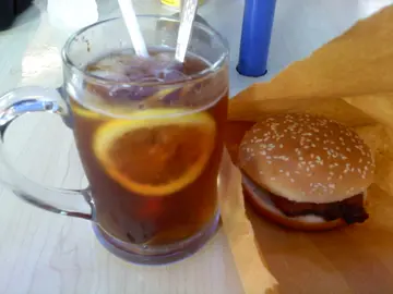 昨天是國慶假期,我照樣一個人四處去蕩,當天的目的地是坪洲。我在坪洲逛了差不多兩個小時,到了接近下午二時左右,是吃午飯的時間了,我在坪洲碼頭附近找呀找,最後選擇了青草地,作為我當天吃午飯的據點。我叫了一客該餐廳的招牌菜式-葡汁雞飯。只消五分鐘左右,葡汁雞飯端上來了。我吃後的感覺是,葡汁的鮮味,與白飯配合得相當不錯,而且配菜也相當新鮮。只是它的主角-雞,就有很多而且很大的骨,弄得我要小心翼翼地吃才行。飲品是一杯凍的竹蔗甘筍檸檬,喝起來相當清甜,感覺十分爽。總體來說,那頓午餐也還算是不錯的,如果能少一點骨的話,會更加好。