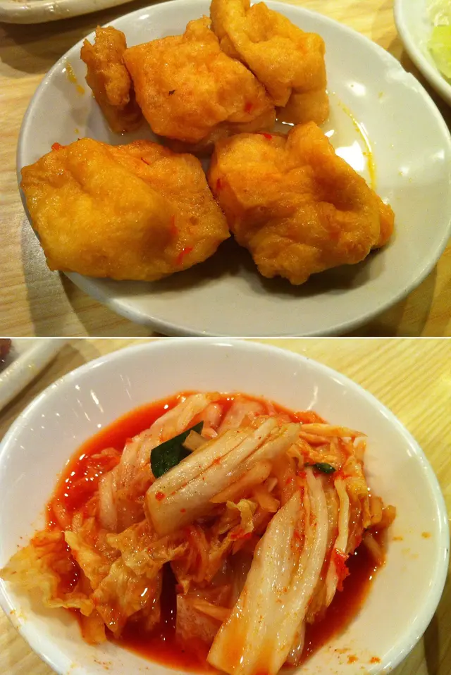 豆腐卜吸飽了辣湯真好吃;泡菜太冰,酸度及辣度都不夠