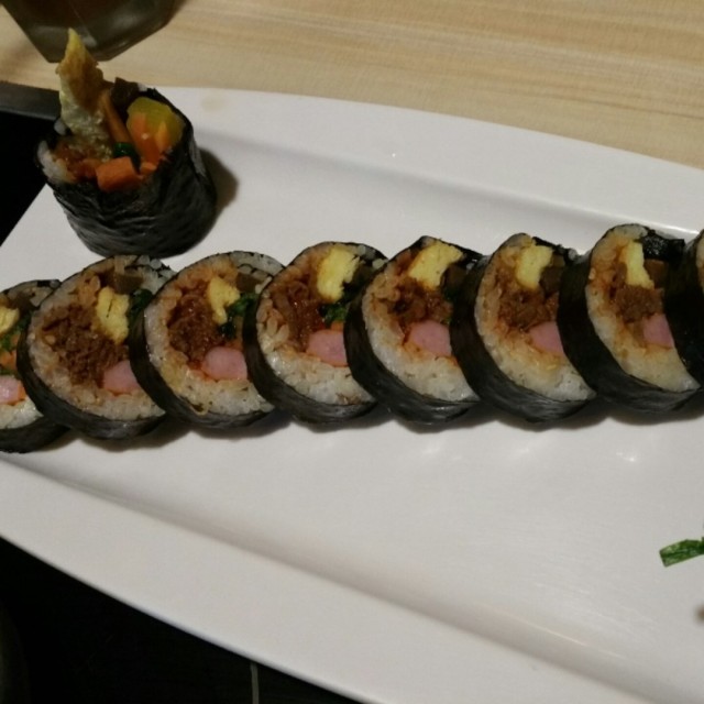 今天因為工作需要,沒有留在家中做煮飯佬而出了尖沙咀老婆下班後說既然這樣就去吃韓食,本來打算去韓國街,但路過看見這間未試過,所以嘗試一下一進餐廳人不太多,只有半滿,很快被安排入座坐下看看menu,有很多喜歡吃的菜式,真的不知從何入手但無奈我們只有兩人,所以也吃不了太多,最後叫了烤爐烤芝士脊排和韓式豬手點餐後店員立即送上前菜,份量比其他餐廳頗多前菜有:蘿蔔燉牛腩 - 味道不錯,但有點韌泡菜 - 普通醃蘿蔔 - 正常韓式卷蛋 - 冷冷的不特止,還很乾也沒甚麼味道芝士脊排原來是餐來的,menu上沒列明,是店員告知可以點兩杯飲品drink menu上的飲品外連酒類也可以,最後我們選了芒果smoothie及藍莓smoothiesmoothie上枱時只見杯是半滿,有點失望嘗過味道後反而慶幸是半滿,因為飲品味偏淡還有味道是很artificial等了一會先上的是豬手豬手大大碟的,份量很多,口感也不錯豬皮是煙煙韌韌的,很有骨膠原的感覺,肉也不會乾可惜的是味道也是偏淡豬手附上醬汁,但跟豬手一點都不夾,只有鹹味太餓的關係,當我們把豬手吃掉一半之際,突然間店員放下一碗蒸蛋詢問後原來也是跟餐的,所以我們也不客氣地品嚐蒸蛋熱熱的,味道不錯,可惜是有點老因為老婆不太吃這種蒸蛋,所以幾乎是獨自KO了它再等了一會,芝士脊排到了一上枱,嘩~~很大份,脊排每件都很有份量店員先幫我們烤熱芝士然後把脊排每件沾上芝士我們急不及待的把脊排放入口中嘗了一口後我倆都非常失望首先芝士是沒甚麼芝士味 (沒錯,就是電視裡芝士很有芝士味的味道沒有了)脊排的肉是乾乾硬硬的,味道幾乎可以說是沒味道茄子及洋蔥沾滿醬汁很有味,但茄子是半生的本來想用烤爐的熱力煮熟茄子,無奈的是同時間也會把芝士燒焦因為實在太不好吃,老婆勉強的吃了兩條就放棄了,結果還是我要把它們KO最後我用了兩杯smoothie加大量的水才把這乾乾的脊排給KO掉 (明顯老婆其實是很不喜歡那杯smoothie才讓給我)說真的,所有的食物都是偏淡的,只有前菜及蒸蛋是有味的其實我倆平時食得很清淡,煮飯不下鹽也覺得很夠味,真的不知為何這裡煮出來的食物都是淡而無味最後埋單成為八百多,真的覺得一點都不值,寧願上樓上的其他餐廳吃