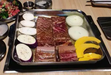 來到韓式燒烤,通常食身主角身必定食牛肉的,是關韓國牛肉比較出名好食。我今次點左一碟牛肋肉來品嘗。牛肉比較厚身,肉身亦見到有雪花形狀,放上爐上只係輕輕地燒了一會,就拿出來了。放入口直頭完全被牛既香味吸引住,而牛肉既質地亦很鬆軟,都幾有口感。而味道亦事前被調味料炮製過,都已經入哂味,好味道啊。