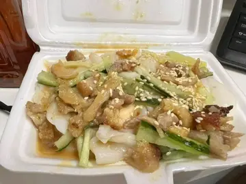 今日晏晝嘅時候其實已經嚟過呢間店買咗個西洋菜餃食,西洋菜餃就好好味不過啲湯就唔係太好味啦。 所以夜晚嘅時候我嗌既餃子係走湯嘅。夜晚嗌外賣嘅時候唔算好多人,我嗌完嘅時候佢嘅出餐速度都算快, 我都只係等咗十分鐘左右就已經攞到外賣啦。今次我嗌咗韭菜餃,椰菜餃,雞絲粉皮。 韮菜餃就一般般,不過椰菜餃就超級好食呀。 椰菜夠甜,咬落去好爽口, 皮都算薄嘅。 雞絲粉皮叫咗少少辣, 食落口個辣度對我嚟講啱啱好,好食又過癮。 喺呢個地段嚟講都算一個平民化同比較貼地嘅價錢。