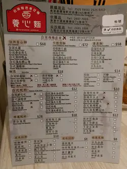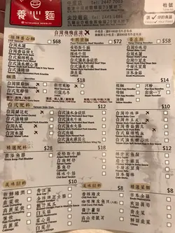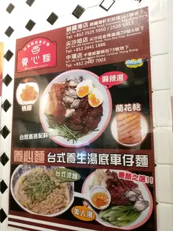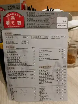 養心麵既賣點係車仔麵 湯底亦有養心殿最出名既美人湯及麻辣湯可選 好辣既我當然就揀左麻辣湯啦 不過因怕太辣就只嗌左小辣 結果唔夠辣 好彩檯面亦有辣油任加 同樣夠香夠辣 建議食得辣既朋友可以直接挑戰中辣或以上菜單上見到有數種食材都係台灣直送 亦有台式肉燥飯 小食及飲品 但我則嗌了碗車仔麵及一枝杞子菊花圓肉露 落單後先付錢後上菜我無嗌套餐麵 根據自己口味 選了關廟麵配牛筋 牛腩 金茹 水蓮 瑞士雞翼 鴨血六個餸 全部都係吸汁既重口味食物