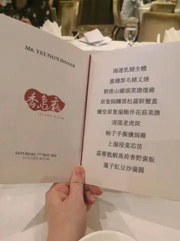 ,大讚抵食。位於深水灣o既「鄉村俱樂部」感覺雖然有少少與世隔絕,但原來俱樂部為海洋公園之鄰居,正門同附近都有不同路線o既巴士及小巴站,等遲少少地鐡開埋就仲方便。如果非會員選擇停泊私家車於停車場,入門口時只需繳付一次性收費$50,即可泊足一晚,當然係唔包過夜啦;因為通常食飯都要成兩、三個鐘,如果飯前有麻雀打,或者飯後有歌聽,可能會泊成五個鐘添,所以個人覺得收費唔算貴。當八歲o既小堂細佬步入俱樂部時,第一句就形容環境「好似五星級酒店咁,好高級,好有氣派呀!」我地當晚去o既「香島廳」係會所內之高級中菜廳,有服裝限制,穿著短褲或波鞋者均不得內進。餐廳樓面高,格調高雅,環境光猛潔亮,地方寬敞舒適衛生,堂細佬冇講錯,真係猶如置身於高級酒店內般