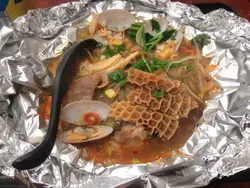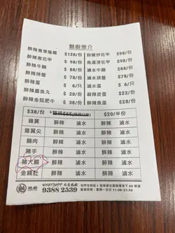 鋪位細細,大概有十多個位,多少有點逼,不過味道還可以。餐牌不算多選擇,有點似車仔麵,由湯底, 辣度,麵,餸,飲品,續樣揀。兩個人揀咗麻辣湯底和醉辣湯底。個人覺得醉辣湯底幾有趣,辣中帶有酒香,不過朋友覺得有啲啲怪,唔適合佢。麻辣湯底唔算好辣,但夠麻,那種麻香是我的最愛。至於餸方面,一碗選了花甲,豬手,金錢肚,另一碗選了花甲,大腸,牛腩,鹵水蛋和口水雞。主打的花甲品質一般,size較小,而且唔夠入味,反而口水雞幾滑。整體不過不失,可以再嚟~…查看更多