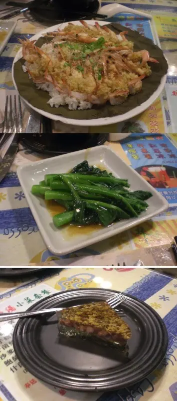 招牌蒜茸圍蝦飯、鮑汁菜心、桂花糕