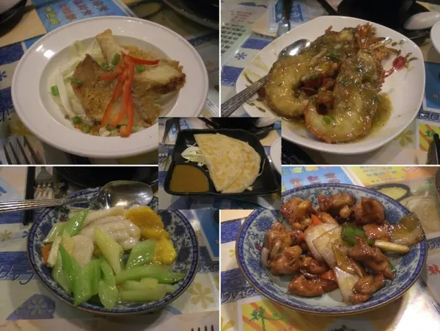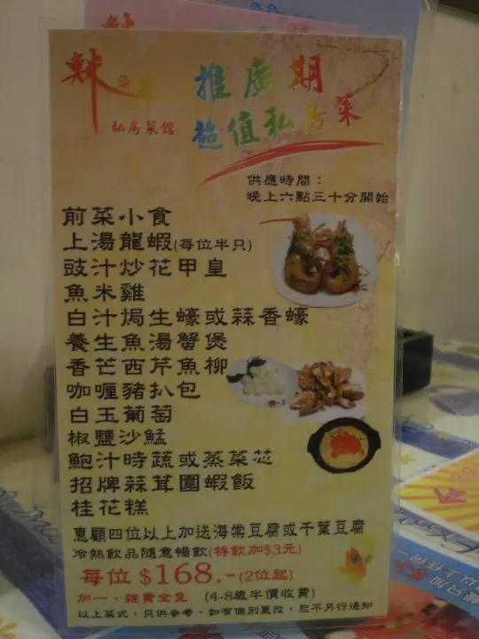 上湯龍蝦、西芹香芒魚柳、魚米雞