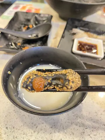 在瀝源邨探朋友,晚上順便吃晚餐。點了一個二人餐。有米線、有飯、有甜品和飲品。🐟煎封海鱸魚米線鱸魚外皮煎到金黃酥脆!肉質保持嫩滑,配吸湯力超強的響鈴加上清爽芽菜,湯底鮮甜不膩。🍖果醋豬軟骨菜飯豬軟骨炆到入口即化!果醋香氣開胃解膩,菜飯拌勻食超對味。我們還點了小食。炸鮮蝦韭菜餃:皮薄餡多,蝦肉彈牙。脆皮南瓜粒外脆內綿,香甜不油膩。紅豆椰果仙草凍,料多到滿出來,好豐富。流沙芝麻球炸得香脆,外脆內軟糯。熱柑桔蜜潤喉養生,凍檸茶解膩。…查看更多