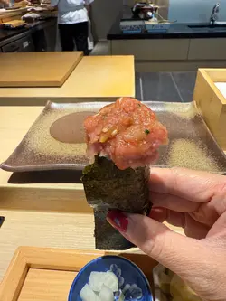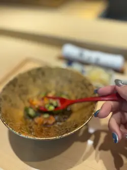 位於銅鑼灣的「鮨山月」日本料理,午市和晚市主打廚師發辦,一向口碑甚好,全因料理師傅精於善用各種日本時令直送食材,配搭不同的烹調手法,令每道菜視覺和味覺錦上添花,非常之有驚喜,近期品嚐過數一數二如此精彩的Omakase👍👍🌟月TSUKl $ 1880 共18品✨秋田野生鱸魚|魚質口感爽身配酸醋汁味道清新開胃✨赤背刺身|配上蒓菜、青瓜再切粒,口感豐富,而且更加突出赤背的鮮味✨德島真蠔|蠔身飽滿鮮爽口,配菜茶豆、冬瓜、新鮮海苔醬汁,味道特別鮮味✨汁煮鮟鱇魚肝|精彩之作,鮟鱇魚肝磨成蓉,再放上蕃茄啫喱和紫蘇花葉,配合超香脆撻底,入口口感豐富,味道油潤甘香帶蕃茄的清甜味道,心機之作超級好食✨鰆魚|是馬鮫魚的一種,用炭燒方法處理,釋出魚油特別肥美,師傅用漬洋蔥粒、茗荷和四季紅,味道甜美能中和油分✨太刀魚|用米網紙和紫蘇葉包住炸香,用甜椒和茄子打成肉做醬汁,魚肉飽滿入口嫩滑,醬汁味道天然,很好味的一道炸物,再配合紅桑子汁醃漬蕃茄,清甜無比✨ 牡丹蝦|超巨型的牡丹蝦,用上十年紹興酒醃製,入口非常彈牙充滿膠質,而且帶淡淡的酒香✨北海道黃粟米蒸蛋|好驚喜的味道,師傅採用凍食嘅烹調手法,底部是用粟米芯高湯製作的香滑蒸蛋,放上黃粟米蓉和超甜粟米,整個味道都來自清甜的粟米,而且好啱夏天食👍👍🍣白魷魚|膠質豐富魷魚味特濃🍣縞鰺|魚鮮味鮮香,入口魚肉好有彈性🍣清森甜蝦|甜蝦昆布漬處理在混合炒香果的蝦膏再切碎,口感豐富味道甘甜鮮香🍣 紡綞鰤|野生油甘魚味道濃郁,肉質甘香🍣 鰺|口感柔中帶脆,沒有腥味,有獨特的香甜🍣中拖羅|既有魚的鮮味,又有適度的油脂,口感豐富🍣 大拖羅|最肥美部位,脂肪魚油豐富,口感入口即化🍣三文魚籽海膽飯|單睇賣相都知道有多高質,三文魚籽粒粒肥美飽滿,海膽用上北海道根室的出品,整個飯鮮味滿瀉🍲鯛魚麵豉湯|一打開蓋已經聞到好香嘅魚味,經多少時熬製的鯛魚,入口魚味超濃🍮焙茶奶凍|自家製的奶凍香滑無比,配上焙茶醬汁,茶香味道濃郁,而且一啲都唔甜,完美…查看更多