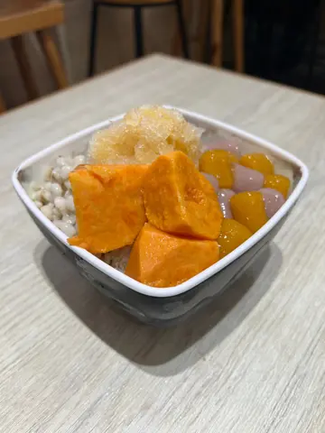 食完飯經過坐低食咗個糖水,二人叫咗熱招牌芋圓 (52$),但店員話每位客人係有最低消費嘅 (好似係28$),所以on top加咗一份配料芋頭 (8$)。熱招牌芋圓有芋圓、白玉湯丸、珍珠,湯底係紅豆湯。紅豆湯真係湯,無乜食到幾粒紅豆,比較稀,每一羹都係一堆珍珠,似食緊珍珠湯多啲。:( 其他配料就一般啦。但個芋頭真係要俾dislike,8$得一舊,重要個芯好硬,似未煮透,亦無乜芋頭味。