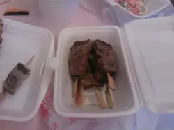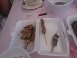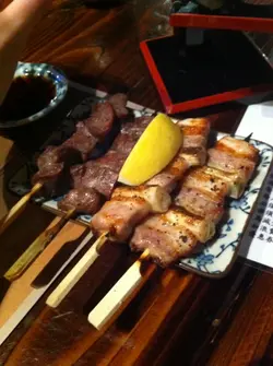 附近看來只有呢間同埋一間長期爆滿既燒X亭咁呢間又無咩人,但係想食串燒都要屈就啦,或者有驚喜友人ORDER左小小野,加起來大約300-400蚊左右啦有鱔,牛舌.雞翼之類.我相信日式串燒由其係雞應該會係汁燒,但係呢度似乎不是.就係咁每一串都係DRYDRY的最好食的是鱔,魚油香加上少少SALT調味下魚味突出,但係好細舊,咁就收3-40蚊1串,我認為大舊D好D雖然唔洗我比錢