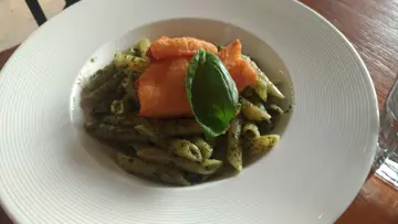 芝士味濃,亦夠creamy,唔錯蘿勒青醬朧脷柳長通粉