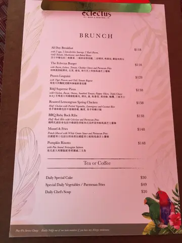 今日小妹屋企人全家咁岩去左旅行星期日終於可以享受下自己一個人既時光無假去日本緊係係香港都要去血拼下行完葵涌既大型名店Outlet 緊係坐定定自己一個食番個靚brunch先對得起自己主題果然配合番餐廳名字-鸚國有店主既鸚鵡作為鎮店之寶環境寧靜就黎又坐得舒適簡直係自己一個享受brunch既不二之選Brunch menu 上面有多款選擇:共8款包埋飲品之餘又可以加錢叫件cake 薯菜同湯燒烤乳豬肋骨配西式涼拌菜和帕馬森芝士薯條 $138豬肋骨烤完過仍多汁扎實彈牙 肉質鮮嫩 吾會有根骨跟肉都好易分離一放入口 豬肉的香味和油脂慢慢溶化 十分美味薯條炸得外脆內軟 呈現金黃色既外層薯條粗粗幾有口感 比起平時係快餐店食開既薯條好味一萬倍 好酥脆栗米一落口 滿口栗米清香 鮮甜香脆既滋味食得滯滯地就食番個沙律 即刻開胃晒咁就渡過左一個星期日餐廳環境優雅 吾會好迫 好適合朋友聚會傾計下次約埋一班朋友再黎brunch過…查看更多