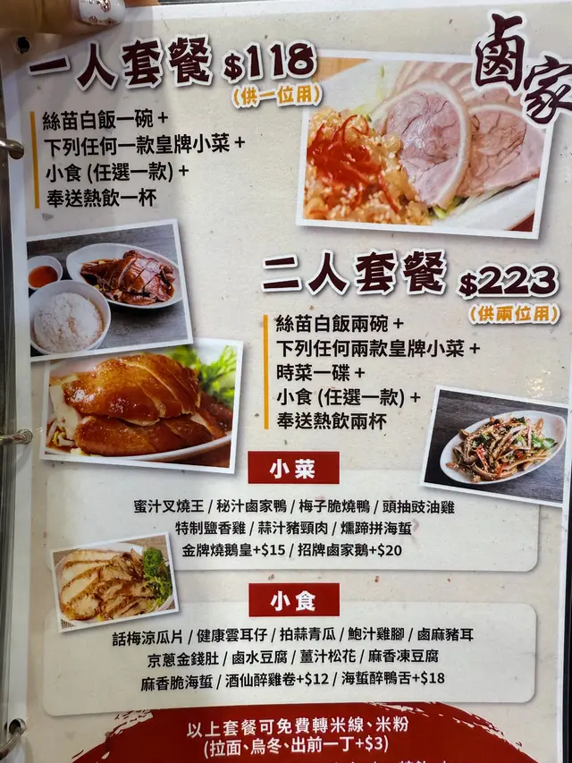 鹵家 @thelufamily2016 📍:香港元朗教育路68號兆豐樓地下10及14號舖🚗:朗屏地鐵C出口 步行14分鐘📞:+852 2363-0355💲:~HKD120/head for lunch Food quality✔️:食神叉燒飯、金牌燒鵝皇飯、酒仙醉雞卷、話梅涼瓜片總結:😋由曾任職於5星級酒店🏨及鏞記嘅老師父主理 係間隱藏喺元朗鬧市中嘅高質港式燒臘店 價錢非常親民但質素超班 非常推薦😋整餐都好食 最有驚喜係話梅涼瓜片 我唔係涼瓜嘅粉絲 但呢碟被話梅浸過蓋過咗啲我唔喜歡嘅苦澀味 話梅味好濃郁但又唔會過酸帶有陣陣苦味非常易入口👏🏼😋呢度食餐燒臘飯只需$60-70蚊 但份量十足仲配埋一碗靚仔 一定夠飽 叉燒有焦香出乎意料 某幾塊仲食有豬嘅甘味 仲跟隻流心蛋餸飯一流👍🏼😋金牌燒鵝淨係份量都夠殺食 仲要好食 $74實在太抵 切得好靚仔 皮脆筋位唔多 唔會卥得過鹹剛好🤣😋酒仙醉雞卷正價就$62 但優惠+$12可跟餐換 一碟有12塊 將雞橫切浸上紹興酒 一入口就係酒香 難怪係招牌😀🤔睇門口以為係街坊冰室 點知內在乾坤真係驚喜十足 一啲好普遍嘅燒鵝叉燒都整得好食仲要收費合理 值得更多元朗居民知道😳🤔要讚下員工服務很好 有個姐姐態度友善全程好好笑容😨店舖唔大間 張枱都頗細張 叫多幾碟嘢就唔太夠位🥲…查看更多
