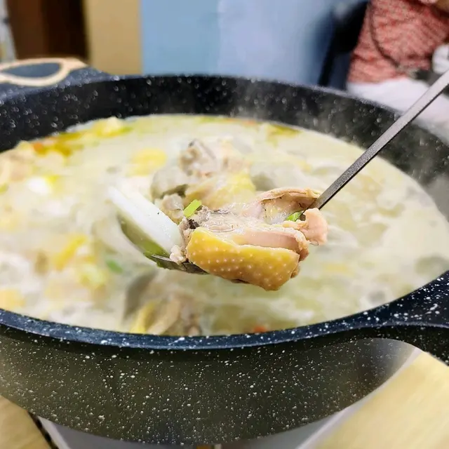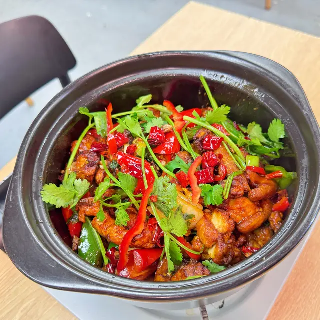 雞煲好滋味,餡餅最出色。屯門市中心杯渡站橋下附近一家粵湘菜餐廳,味道甚有內地那味兒🤭🥘🍗奇妙雞煲2人點了半隻,醬香味濃,雞件肉滑口不柴。配菜有豆卜、白蘿蔔、芫茜蔥、洋蔥、青紅椒和小米椒,不香才怪🤭吃完雞煲下湯灼了一份生菜,連蔬菜都變得油亮香口。🥟菜肉煎餃韭菜豬肉餡,飽滿大隻,咬下去爆汁啊!沾點醋味道更上一層樓。🌮菜肉煎餅跟煎餃是同餡,異曲同工之妙。個人覺得比煎餃更好吃🤩不得了不得了!貓太太願意為餡餅特登再嚟😍…查看更多