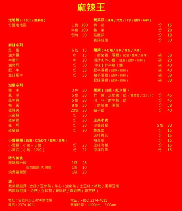 麻辣王 (佐敦) 網址: https://s.openrice.com/QrbS0T4q000 地址: 香港佐敦白加士街90號地舖 電話: +852 23744011