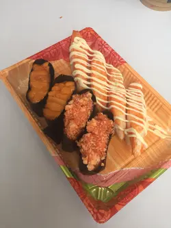 經過見到新開,睇到餐牌第一個反應係「哇!都幾平喎」而且學生餐都只係$40,就入左去試...結果好失望。朋友叫左壽司食,我都叫左兩舊,無可否認價錢係平既,但係啲魚生真係好薄。附近有另一間壽司店同佢價錢差不多,三文魚都係$3一舊,學生仲有9折,但質素好過呢間好多。另外我地仲叫左鰻魚煎蛋飯成碗飯最好食就係啲醃蘿白同啲紫菜絲...首先佢碗飯真係冇乜汁,然後條鰻魚唔知點解好鞋好實好多骨最後我揀左奶凍 冇飲汽水 但個奶凍都係冇奶味 反而似森永牛奶糖既味 真係試完一次就算了😓😓😓唯一值得讚既係佢既香芋丸小食 係幾好味既 但有啲痴牙。…查看更多