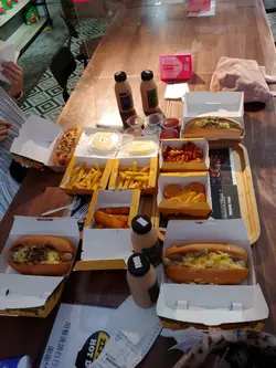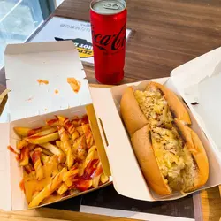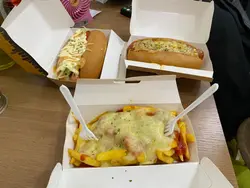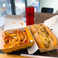 原來呢間熱狗店全香港有咁多間分店。去到九龍灣唔知食咩好,又已經過咗六點,政府話冇得堂食。好在有間熱狗店可以外賣。叫咗三個熱狗,一個跟餐。加$15可以有小食同埋嘢飲。另外兩個熱狗唔跟餐因為想食煙肉芝士薯條同埋辣肉醬薯條。跟餐嘅話冇呢兩個口味。同埋跟餐嘅薯條都係細薯條。不過可以自由配搭加少少錢變大薯條加芝士醬。三個熱狗熱辣辣,新鮮製造好好味。每一隻熱狗都幾大隻下。基本上一個熱狗同埋一個薯條已經好飽。大食啲嘅話,叫多一隻熱狗一定飽到頂住。都唔算貴。大概$60至$70就搞掂。最鍾意食佢哋個紐約熱狗。查看更多