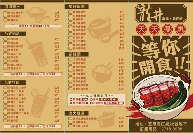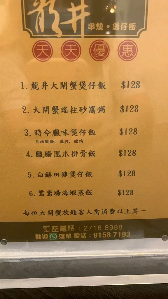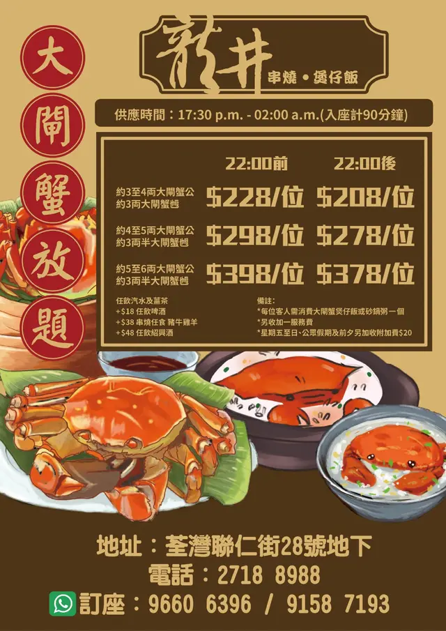 龍井 (荃灣) 網址: https://s.openrice.com/QrbS0y6e500 地址: 香港荃灣聯仁街28號康睦庭園地舖 電話: +852 27188988