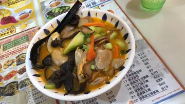 牛頭角龍城冰室 下午飯套餐羅宋湯味道普通帶微酸辣,蔬菜及牛肉味稍淡,有少少似中國嘅酸辣湯。酸菜魚鱸魚肉滑皮韌,酸辣開胃,川椒辣椒加埋一齊食好惹味,做得幾出色,酸菜味淡缺乏酸味,伴碟裝飾夠靚仔,但係一定要食得辣先至好落單。五香牛雜五香味濃鹹味足夠,牛腸口感強烈充滿濃郁油脂味,粉嫩軟腍。金錢牛肚炆得稍腍冇煙韌爽口感覺,牛蒡粉嫩軟綿綿甘香味十足,牛肺缺乏口感,整體五香味道豐富,牛雜汁撈飯相對較味鹹。焗芝士咖喱牛筋腩椰奶椰汁味香濃滑,咖喱香氣撲鼻,帶微微辣,雖然要等長啲時間烹調燒焗,但係上枱熱辣辣,薯仔索咗椰汁咖喱夠軟腍入口溶化口味一流,藉得一試嘅午飯套餐。鹽焗雞飯味道鹹香濃郁,雞肉軟腍腍有雞味冇柴皮,砂礓汁稍為過鹹,白飯軟硬度適中。紅豆冰甜味足夠,紅豆軟綿奶香味濃滑溜,紅豆量足夠,係一杯好出色嘅紅豆冰。餐廳好多顧客幫襯,我哋一行五人都俾咗一張U型大餐枱,進餐時寬敞舒適,裝修一般普通。杯碟碗筷清潔乾淨,店員非常忙碌,但都應對有禮貌。餐牌價錢比一般茶餐廳略高。…查看更多