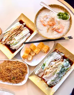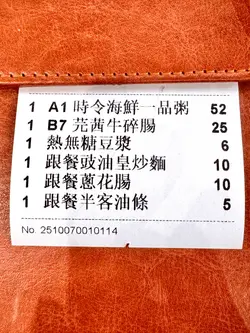 一品粥好吃,粥底綿滑,不會漿住喉嚨,很好吃。腸粉最喜歡,是大陸款,粉皮輕身起皺,一睇已經知岩我心水。配芫荽好好味。豉油王炒麵就普通咗啲,配甜醬立馬變好吃。如果炒麵可以加芽菜就好啦。豆漿無糖,豆味不太濃,但都可以接受。