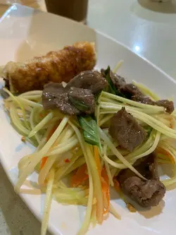 點了一杯凍奶茶少冰,越式春卷,生牛河。味道是還可以的。但上菜時間很長,本人認為是漏單。因為比我遲來的人,竟然還能先吃。來了個越式春卷,竟然炸唔透,入面還是凍。店家即刻換過,當然是拿舊去重新炸,結果就燶了。生牛河到了,味道是可以,但粉是沒有鬆好就煮,結果粉不是一條條,是一餅餅。可能是天氣有點凍,所以店家是關了冷氣,由於我坐門口位置,結果就要邊吃西北風邊吃生牛河。有時間有空閒可以一試,但不要有期望。燶到呢生及凍,我指春卷,以及一餅河粉