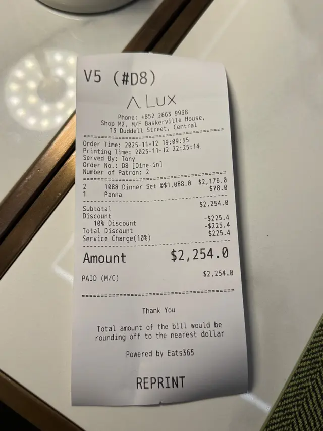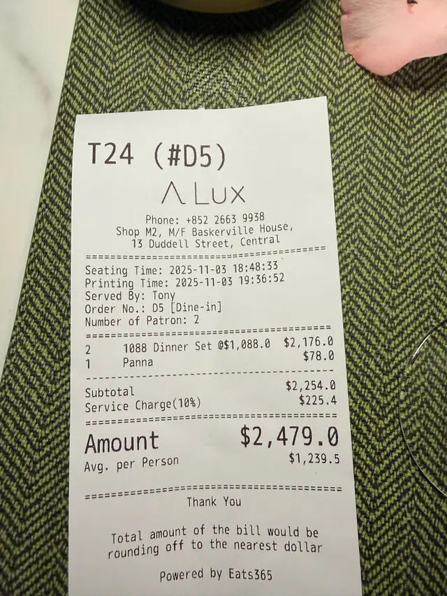 A Lux (中環) 網上訂座享低至7折優惠兼賺Rice Dollars 網址: https://s.openrice.com/QrbS0TbeB00 地址: 香港中環都爹利街13號樂成行地庫M2號舖 電話: +852 26639938