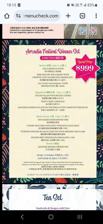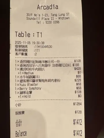 今次同朋友登上30樓「Arcadia」,望住維港夜景🌊猶如置身於花海一樣中享用美食💐餐廳逢星期三至六有Live Music🎤.⚠️此餐廳收取10%服務費💰.Arcadia Festival Dinner Set🍽️套餐$999💰.西伯利亞13年魚子醬🖤跟餐$180💰魚子醬連同小圓餅🍪輕嚐一口😗魚子釋放出豐富的鮮味,餘韻爽口😋仲有2串水牛芝士串及2款配料 🥓.香煎澳洲盲曹魚🐟盲曹魚表面放上芒果莎莎🥭煎至皮脆肉嫰😆加上青檸汁更加開胃🍋🟩底下有中東米飯🍚.避風塘XO 醬原隻鮑魚蜆肉扁意粉🍝套餐包含💰有鮑魚、蜆、魚🐠八爪魚🐙蝦🦐意粉微鹹辣🌶️略嫌偏油🥲.香煎日本刺身帶子伴三文魚籽🐚套餐包含💰帶子表面煎至焦香🔥肉質鮮嫩多汁😛配上鹹鮮三文魚籽,以及小沙律🍅🥬.地道黎巴嫩沙律配水牛芝士🥗套餐包含💰有水牛芝士🫕黑橄欖、青橄欖🫒車厘茄、沙律菜🥦石榴、青瓜🥒麵包粒🍞整體味道酸甜🤤又有奶香😌.朱古力布朗尼🍫套餐包含💰布朗尼配上雪糕🍨水果🍓🍇.Smiling🍸跟餐$44💰由開心果、榛子🌰抹茶🍵同牛奶調製而成🥛略嫌太甜🥺.Sun Of The Peach🍹跟餐$44💰由蜜桃🍑檸檬🍋同紅茶調製而成🫖.生日6大優惠🎁1️⃣生日佈置🎂2️⃣免費生日禮物『永生花禮盒』💐3️⃣壽星免費Magic Cocktail⚱️4️⃣6-8pm / 8-10pm 前慶祝生日晚餐,生日壽星免費任飲,同行其他人+$158/2小時任飲5️⃣全單8折6️⃣免開瓶費*開瓶只限兩人一支🍾…さらに見る