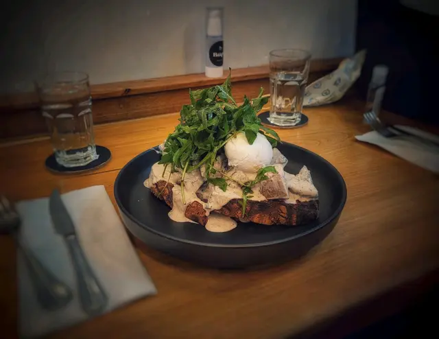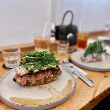這家店隱藏在中環的小巷裡,外觀是低調的灰色水泥牆,店面非常小,如果不是旁邊搶眼的建築會比較難找到!但是絕對值得大家去嘗試的一家店!我和朋友約了Brunch,分別點了這家的招牌菜-Big boss:火箭菜、煎蛋、牛肉、洋蔥、蘑菇,醬汁酸酸甜甜的很入味,醬汁和肉汁很多一起滲入到下面的麵包,外脆內軟有嚼勁很好吃!-Oh my god:火箭菜、蘑菇、水波蛋配上黑松露芝士奶油醬,是素食主義者首選。總之是值得再去的一家餐廳!推薦!…查看更多