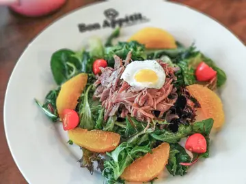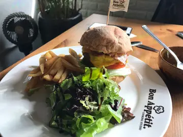 觀塘出晒名多好嘢食,今次同閨蜜去試間新開嘅私房西餐廳。觀塘永興工業大廈一向畀我感覺無咩嘢食,咁耐以嚟,我只係去過一次攀石😆。一入到餐廳,好似去咗另一個世界。(食完餐飯離開,我先醒起自己今日去咗觀塘😅)餐廳環境好優雅、簡潔,感覺好舒服。可能新開又相比附近餐廳地點較偏遠,繁忙時間都唔多人。對我來說,這點很重要,因我不太喜歡多人嘅地方進餐。餐湯是椰菜濃湯,前菜沙律係蟹籽沙律(兩選一)。沙律賣相很精美,湯味道都可以。我點了和牛漢堡,閨蜜就點了滑蛋(炸)豬排飯。唔知係咪我吃得較清淡,我覺得這個漢堡太咸了,配菜的薯條都太咸。滑蛋豬排飯就好味好多,我見兩邊枱的食客都有 order。餐飲點了西柚熱情果冰茶,我本人唔太飲到熱情果味。餐廳是半自助,出面有小水吧自己囉水。值得一讚是,它不是普通的水,我見入面加咗青檸、青瓜、香草等。味道十分清新!特別注意!餐廳內有個靚仔廚師,雖然佢唔係我杯茶,不過目測佢應該吸納了不少粉絲