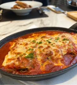 黃金福袋有驚喜感, 賣相精緻, 外型似個金袋仔, 一上枱已經散發住香氣~ 炸豆皮皮薄冇油膩感, 內層餡料豐富~~ 主菜我哋分別叫咗香煎脆皮三文魚,魚皮煎得好靚, 魚肉保持到嫩滑油潤, 冇煎過籠!!食落好清爽, 唔會覺得膩