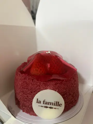 朋友專登送左個士多啤梨蛋糕俾我試下最鐘意食蛋糕嘅我收到超開心!蛋糕外表好粉紅🥰好吸引人嘅目光最鍾意就係食佢哋嘅蛋糕因為蛋糕唔會太甜又唔會太多cream士多啤梨好甜好香上面嗰層薄薄嘅啫喱充滿着士多啤梨香味而係啫喱面頭嘅金箔令到蛋糕變得奢華呢個蛋糕好適合幾個女仔,食完飯之後share食唔使擔心,食完食唔晒但同時間又好靚,可以打卡好鍾意佢哋咁體貼用咁靚嘅紙盒載着!-La Famille-希望佢哋可以開多啲分店🥹🥹真係好好食❤️🫶🏻