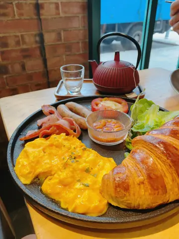Cafe對正停車錶位,對於揸車人士相當方便,餐廳雖然細細間但佈置用心,座位唔多,枱與枱之間略微狹窄,播放柔和音樂俾人一種放鬆既感覺。————————————♥———————————- - - - - - - - - - - - - - - - - - - - - - - - - - - - -♥️ 美式早餐 $98作為麵包控既小編一心諗著試下Bagel,點知已經賣哂,唯有轉食美式早餐。煙肉腸仔正常發揮,芝士大啡菇需時製作,職員安排後上,新鮮焗起既啡菇都算多汁,牛角包普普通通,略為唔夠牛油香。♥️卡邦尼意粉🍝意粉質感正常,忌廉汁比較杰身,食落有少少乾,味道有啲淡,整體黎講一般般。♥️ Flat White 咖啡面有個小小既心型拉花,聞落有微微咖啡香,甜度適中。♥️ 台灣紅茶 用一個小茶壺盛載,可再添加熱水。- - - - - - - - - - - - - - - - - - - - - - - - - - - - -————————————♥———————————…查看更多