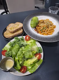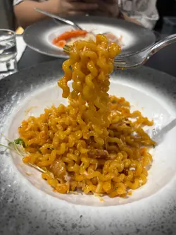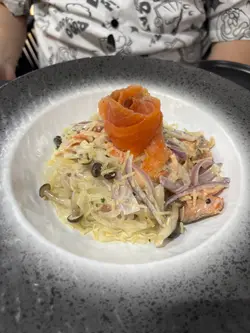 🍝🍽️☕️工廈cafe卷卷意粉✅韓式玫瑰醬意大利煙肉卷卷意粉 - $128終於試到而家好出名嘅卷卷意粉!意粉嘅份量唔算好多,可能因為卷卷意粉本身成本比較貴,但佢真係幾掛汁,口感會比較硬。講返個調味先,真係幾好味,酸酸甜甜但係又微辣,好惹味。煙肉亦都有煎香左,整體嚟講個配搭幾好。✅煙三文魚忌廉蒟蒻麵 -$118想低卡啲嘅話可以試吓呢款蒟蒻麵。呢度嘅蒟蒻麵係好似扁意粉咁,口感都幾得意,煙三文魚嘅份量都算比得多。除咗上面卷左花之外,裏面都有啲熟嘅三文魚,另外仲有一啲菇同埋洋蔥作配料。調味嚟講就比頭先個卷卷意粉淡。✅南瓜湯 + 青檸奇異果薄荷梳打 -$38其中一個set加咗$38轉套餐,可以揀餐湯或沙律加一杯飲品。我哋揀咗餐湯南瓜湯,呢個湯真係幾好飲,南瓜味好濃,而且好幼滑。至於個梳打都幾特別,唔會好酸,裏面有好多薄片嘅奇異果可以拎嚟食。✅ 提拉米蘇 -$58估唔到甜品都同樣都好出色,拎上枱嘅時候已經覺得好靚,咖啡味香濃,個cream好順滑,入邊嘅蛋糕比較濕,但整體嚟講口感味道都唔錯,係一間會encore嘅餐廳!…查看更多