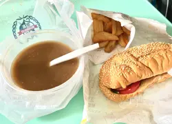 黎到觀塘 想食下香港特色小食就要黎依間店 成日經過都想食今日終於有機會😎男神熱狗餐(💸$40)熱狗生菜同蕃茄好新鮮🍅配合落左沙律醬既懷舊香腸🌭有種去左外國食熱狗既感覺 食得多芝士夾熱狗 偶然食一下田園風味🥬帶來一啲清新既感覺 加上即叫即整 熱辣辣咁食 一流👍🏻蒜香多士條無咩存在感既麵包條配上蒜香汁香脆又唔浪費食材👍🏻高級觀音兵糧餐(💸$40)楊枝金露好清爽🤗西柚微酸 中和左甜味加上用既芒果都唔係死甜🥭令呢碗糖水食落微甜而不膩 中意芒果既可以一試🙆🏻‍♀️炸燒賣炸燒賣基本上係好難失敗既產品適當既調味就可以不過炸過火的就會好乾💥而依到係即炸出爐 食落外脆內軟唔經唔覺一粒又一粒食😋價錢合理 份量又夠熟悉的味道食出懷舊地道香港味🇭🇰套餐名改得貼地又搞笑😂重點係💛到金 一定要支持啦查看更多