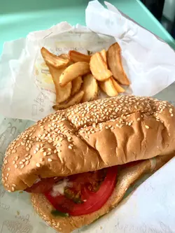呢間餐廳咩料,相信黎到門口已經知,都唔使點解釋啦。餐廳主打糖水同小食,仲有套餐揀,價錢貼地。🐖女神豬扒包+🍟薯條+🧃烏龍茶+🥡炸燒賣叫左個套餐再加一份小食,即叫即製熱辣辣。豬扒包都幾大個,拎上手好厚身,豬扒醃得鹹香,質感軟腍唔鞋口,夾左生菜蕃茄很爽口,醬汁係沙律醬,個包仲塗左牛油,幾好食吖😋薯條係曲曲條,正!炸燒賣很香脆,不過個人都係鍾意蒸燒賣多啲,下次叫番蒸😝套餐包一盒紙包飲品,揀左烏龍茶。下午去完全無客…想食小食就黎支持下啦🥰查看更多