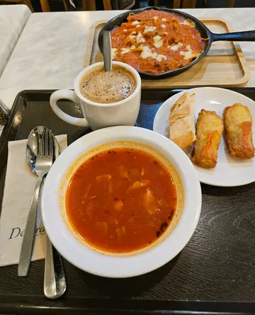 啱啱喺呢家唔俗既餐廳食晏,味道正到爆炸咁😲!首先,個意大利雜茶菜湯湯底濃郁得嚟唔會過鹹,每啖都有落肚既蔬菜,真係好滿足。再嚟就係個紅酒汁燴牛尾扁意粉,牛尾腍滑惹味,個紅酒香勁夠,啖啖肉,真係過癮!而啲扁意粉嘅煙韌度正到不得了,掛汁又好,食咗仲想多啲😋。至於老婆點既素菜千層麵,份量幾綽綽有餘,夾雜既蔬菜清新唔膩,不過要係啲瓜能夠焗得再軟熟啲就更完美。雖然傾向素食,但係呢度既薯蓉又豐富又滑溜,啖啖都係滿足感。結束咗豐富既一餐,仲要嚟杯熱辣辣既即磨咖啡,提提神,香濃得滯,真係幫襯到啱啱好👍🏻。依家滿足地坐喺度,回味住啲美食,相信唔使耐,我又會掛住呢啲滋味,跑嚟二訪喇!真心推介俾鐘意食好西嘅朋友,唔駛諗,嚟就對喇!…查看更多