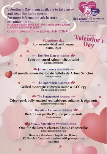 早排男朋友同舊同事去食晚飯,返到屋企就同我講灣仔原來有間西班牙tapas餐廳,餐廳名翻譯完叫一隻豬,個名好搞笑!佢話好味話要帶我去試下。本身諗住上星期日去,點知原來呢間餐廳逢星期日休息。之後我哋擱致左,點知男朋友興起話不如今晚去,我哋兩個放工之後就去左果度開飯。個menu由肉/海鮮/蔬菜/飯類/甜品都有好多選擇。我哋就叫左五款tapas !Croquetas de Jamon / ham croquets : 火腿咸咸地加埋薯肉,個皮好脆口喎!其實我想試墨汁croquets,不過佢唔食海鮮,唯有等下次!Chickpeas/ Chorizo with tomato sauce :冇諗過咁好味,chickpea 煮到唔太淋同埋加埋蕃茄汁酸酸地好開胃!Chorizo 夠惹味Crispy Pork belly - 呢個就要《必試》!肉嫩皮脆簡直係好似中式脆皮燒仔腩大件版,其實得兩件真係唔夠喉!食左咁多油膩野,係時候食下啲菜,本來打算叫西班牙青椒仔,男朋友話去親食tapas 都叫,今次不如試吓新嘢。Grilled Asparagus/ 64C egg/ Serrano Ham : 呢個就好似食緊Spanish breakfast 咁,流心蛋加Ham 加埋露荀,三種簡單材料,配搭好味。Moorish spiced meatball / Tomato sauce 蕃茄肉丸:肉嫩鬆軟,最後一碟都唔覺得膩!食下食下原來都幾飽,可能大部份都係肉類。最怕tapas好咸,呢度tapas完全唔咸而且仲好好,價格合理。今次冇試到西班牙海鮮飯覺得有啲走寶,下次一定要試吓!👍🏻…查看更多