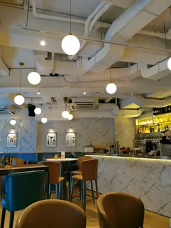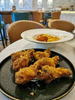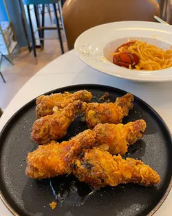 就黎萬聖節,夜晚酒吧咁迫人,所以lunch hour專登過黎食個lunch。餐廳裝修企理,加埋啲萬聖節裝飾,都有啲位可以打吓卡。我哋坐咗門口側邊嗰個卡位,秋天有啲風吹下都幾舒服。.食物我哋叫咗忌廉磨菇意粉、炸雞同埋串燒;串燒有雞肉,亦都有豬肉。因為都係晏晝,所以就冇特別試佢啲嘢飲。可能下次嚟飲下Cocktail。.食物質素中規中矩,都係普通酒吧嘢食質素。不過有個地方係尖沙咀靜靜地可以傾吓計,環境又唔錯,價錢又合理。…查看更多