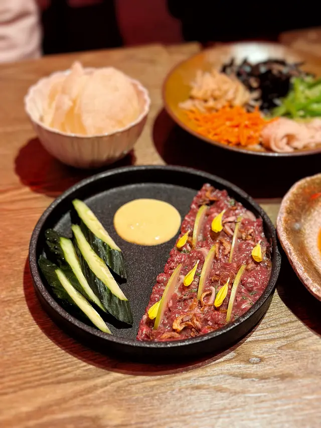 位於中環威靈頓街的ɢᴏʟᴅᴇɴ ɢɪᴘ,是 ᴄᴇɴꜱᴜ ᴄʀᴇᴡ 旗下第四間餐廳,由創辦人佐藤俊主廚帶領團隊策劃,並由主廚 ɴɪɢᴇʟ ᴋɪᴍ 坐鎮。餐廳早前曾於西灣河以快閃形式試業,反應很熱烈。最近終於落戶中環帶來更完整的菜單,餐廳概念以「家」為靈感,名字中的「ɢɪᴘ」在韓文中正是家之意,定位則是將大牌檔的隨意氛圍的餐廳。.室內設計透過紅色霓虹燈光,呼應香港舊日街頭的標誌性霓虹牌。餐廳入口更以大型燈牌作點綴,氣氛熱鬧之餘亦帶點懷舊感。環境並非傳統高級餐廳的拘謹格局,氣氛輕鬆熱鬧。.除了用餐體驗,餐廳亦融入藝術元素,場內展示多位藝術家的作品,讓空間兼具餐飲與展覽的氛圍。料理方面延續 ᴄᴇɴꜱᴜ ᴄʀᴇᴡ 的一貫特色,主打亞洲菜式並融入韓式風格,既有熟悉的味道,又帶來少許新鮮感。.✿ ꜱᴄᴀʟʟᴏᴘ 帶子刺身配上提子味米酒,酸甜味道清爽,果香中和了帶子的油潤感。.✿ ꜱᴇᴀꜰᴏᴏᴅ ᴛᴀʀᴛᴀʀᴇ 各款時令海鮮刺身他他加入青蘋果薄荷汁及西柚,酸甜帶清香,配上帶濃香芝麻的紫菜脆炸片,很香口的一款前菜。.✿ 囍 ᴍɪxᴇᴅ ꜱᴀʟᴀᴅ 韓式撈起以筍片及時令蔬菜組成,配上薑豉油汁,爽脆清新,味道簡單直接。 .✿ ᴛᴜɴᴀ 拖羅刺身以韓式辣果醋調味,辣度溫和,酸香之中帶少許辣油香氣,襯托魚脂的甘香。 . ✿ ɪᴋᴀ ꜱᴀꜱʜɪᴍɪ 魷魚刺身搭配黃皮果和酸梅柚子醋,質感爽口,帶點草本清香。.✿ ʙᴇᴇꜰ ᴛᴀʀᴛᴀʀᴇ 越式和牛他他以生牛肉配蛋黃,伴上蝦片食用,酸汁帶點韓式風格。.✿ ᴡʜɪᴛᴇ ᴋɪᴍᴄʜɪ ᴄᴏʟᴅ ɴᴏᴏᴅʟᴇꜱ 冷麵以自家製白泡菜和蕎麥麵為主,清酸爽口,加上魚生粒點綴,口味清新。 .✿ ᴛɪᴘꜱʏ ᴄʀᴀʙ 全晚重點期待的環節就是一客紹酒醉醬油蟹帶酒香,另可加配飯及海苔,拌勻後鹹香惹味,頗有韓式家常感覺。 .✿ ʜᴏᴛ & ʜᴏɴᴇʏ ɢɪᴘ ᴄʜɪᴄᴋᴇɴ ᴡɪɴɢꜱ 蜜糖麻辣雞翼炒上乾辣椒和花椒,甜辣並存,外層香脆。 .✿ ɢᴏʟᴅᴇɴ ᴘᴏʀᴋ ᴋᴀᴛꜱᴜ 黃金吉列脆豬扒炸得酥香,伴上醃紅莧、煙燻車厘茄醬及芥末沙律醬,帶酸甜與辛香。 .✿ ᴄʀɪꜱᴘʏ ᴇɢɢᴘʟᴀɴᴛ 椒麻茄子天婦羅外層香脆,配上山椒汁,口感對比明顯,鹹香中帶微辣。 .✿ ᴡᴀɢʏᴜ ʙᴜʟɢᴏɢɪ ᴀ4 和牛片配什菜快炒,肉質油潤,帶微辣,口味偏向韓式家常風。 .✿ ᴘᴏʀᴋ ʙᴇʟʟʏ 慢煮三十六小時的豬腩肉烤過後配生菜包,醬料鹹香,油脂化開很惹味。.✿ ᴛᴀɢɪɴᴇ ᴘᴏᴛ ᴡᴀɢʏᴜ ʙɪʙɪᴍʙᴀᴘ 熱鍋韓式和牛拌飯以多款蔬菜及帶子高湯調味,飯焦香脆,拌勻後味道濃郁。 .✿ ʙᴇᴛᴛᴇʀ ᴛʜᴀɴ ʏᴏᴜʀ ʙʀᴇᴀᴋꜰᴀꜱᴛ 甜品焦香白蘭地配雲呢拿雪糕,帶海鹽焦糖鹹香還有焦糖化的棉花糖,甜中帶酒香。 .✿ ᴛ.ᴛ ᴄᴀᴋᴇ 2.0 泰式奶茶蛋糕帶茶香,伴冧酒提子雪糕和焦糖香蕉,很不錯。.✿ ᴡʜᴇʀᴇ’ꜱ ᴛʜᴇ ʙᴜɴ 芒果蛋奶凍伴乳酪忌廉,加入椰絲和焦糖榛子,果香清爽,層次較輕盈。…查看更多