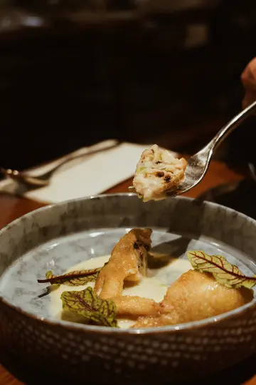 90後藍帶主廚 法式🇫🇷x中式好多自創菜式夠特別,第2度食唔到💛拖羅小金杯小金杯·中拖羅·青提子·鰹魚芥辣啫喱💛紅蝦他他鹹蛋黃泡芙紅蝦•芭樂·海鴨鹹蛋黃泡芙•山女魚籽鹹蛋黃嘅味道好突出💛麻婆豆腐橄欖油黃豆蓉·雜菌碎·麻辣脆蓮藕片黃豆hummus再配埋麻辣雜菇,伴上炸到似薯片嘅薄脆蓮藕,直接encore 左一碟💛菊普湛江雞菊普•湛江雞.葡萄葉釀米椰菜仔•柑桔💛牛仔面頰肉配燒鵝油千層薯牛仔面頰.千層薯·鵝尾油魚腥草•豌豆•酸紫椰菜牛仔面頰肉配鵝油千層薯,牛面肉再加咗少少魚腥草,味道好特別 💛八寶釀乳鴿乳鴿鮑魚·瑤柱·羊肚菌·櫻花蝦·金華火腿潮州鹵水鵝肝·紫莓米·桑椹·櫻花🍨桂花菊花雪糕菊花•桂花•雪梨🍨腐皮拿破崙腐皮•朱古力榛子醬芒果•榛子呢個腐皮版拿破崙好特別,腐皮代替左酥皮有豆香又無禁邪惡…查看更多
