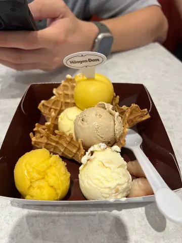 好耐無坐低食雪糕🍨了,酷熱天氣下休休閒閒食凍嘢真係幾爽😋,Haagen-Dazs 尼個品牌係香港都算係老牌子。今次經過咁啱又有得坐(因為坐位唔多得3張4人枱),便叫咗「心花怒放」,因為可以自選5款雪糕球,新出馬卡龍口味當然要試下啦!PS : 尼間堂食唔使加一,買完搵位坐就可以了👍🏻口味選了:抹茶🍵、雙重朱古力🍫馬卡龍、柚子檸檬🍋馬卡龍、士多啤梨🍓紅桑子馬卡龍、忌廉曲奇🍪。整體來說,馬卡龍口味唔算特別,減少咗一份雪糕嘅清新感覺,可能是夏天吧!太甜嘅味道可能唔多夾,至於傳統口味就正常🤗Haagen-Dazs 🍨:九龍灣德福廣場 1期地下G61舖…查看更多