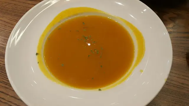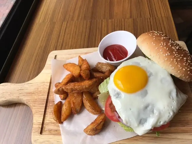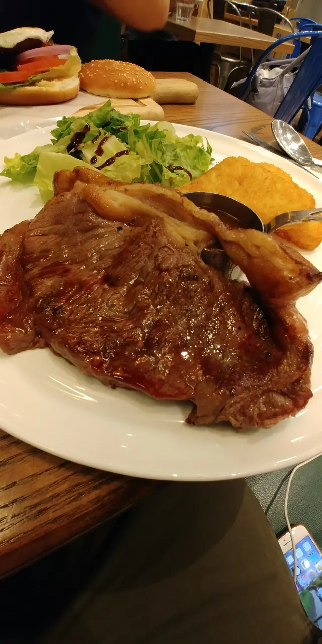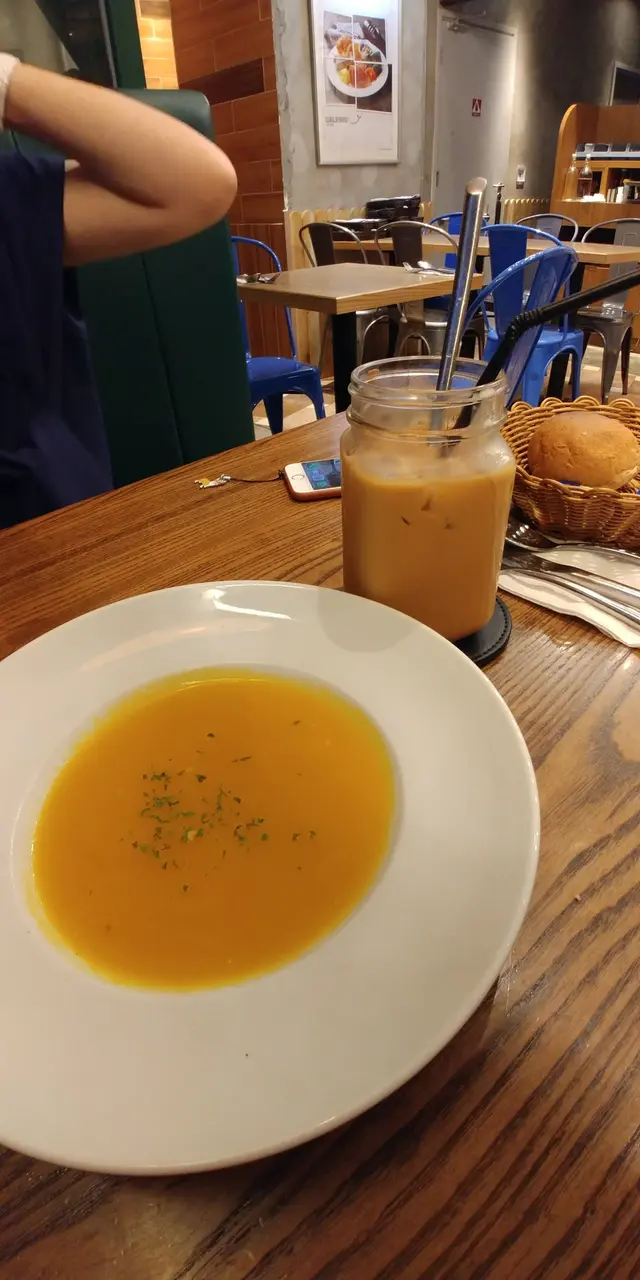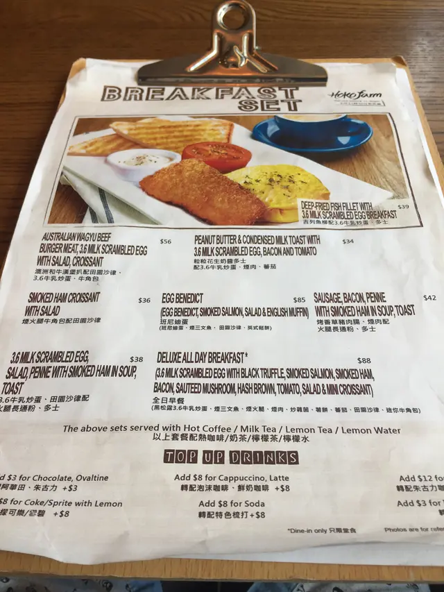 昨日去咗灣仔處理文件,落車時被一間餐廳門口All day breakfast字樣吸引了我,感覺早餐比較輕食,冇其他東西咁heavy😁,所以鍾情All day breakfast,完成工作後就同另一半去醫肚。由於尚未到午飯時間,人不是太多,店内佈置清新田園,舒服自在。我當然㸃了all day breakfast ,另一半見鄰枱的漢堡看似不錯,㸃了和牛漢堡。加$28重可以有湯及咖啡或特飲,㸃了honey cappuccino,單叫也要$32的,真超值。😳甘筍湯味濃,不錯👍All day breakfast好內容豐富,松露炒蛋、parma ham、牛油果、烟三文魚、煎蕃茄、牛角包、沙律菜......味道不錯😋。和牛漢堡都juicy,包軟軟,隻蛋原是太陽蛋,系特別要求返蛋,賣相冇咁靚,味道😋。薯角外脆内軟👍👍。原來吃哂都幾飽😳,飮完咖啡,好滿足了。😄…查看更多